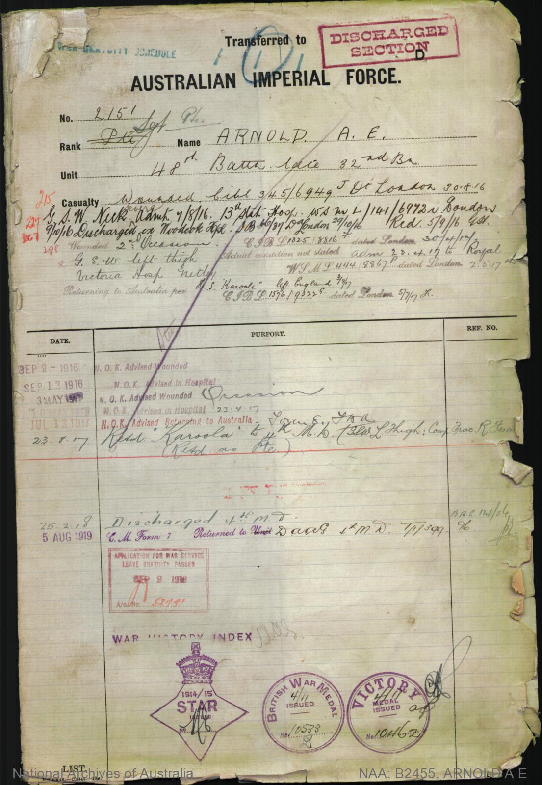 Many Australian Defence Force personnel were Mentioned in Despatches during the First and Second World Wars. Their names were published in The London Gazette and also the Commonwealth of Australia Gazette.
