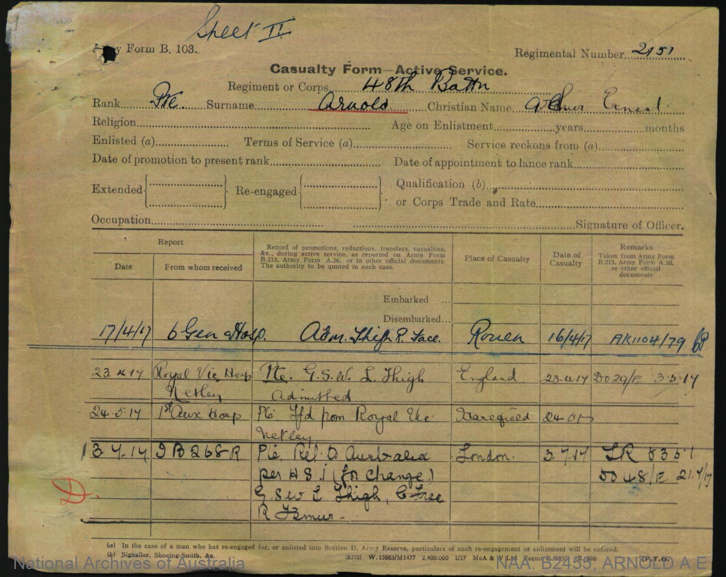 Casualty Form Active Service.