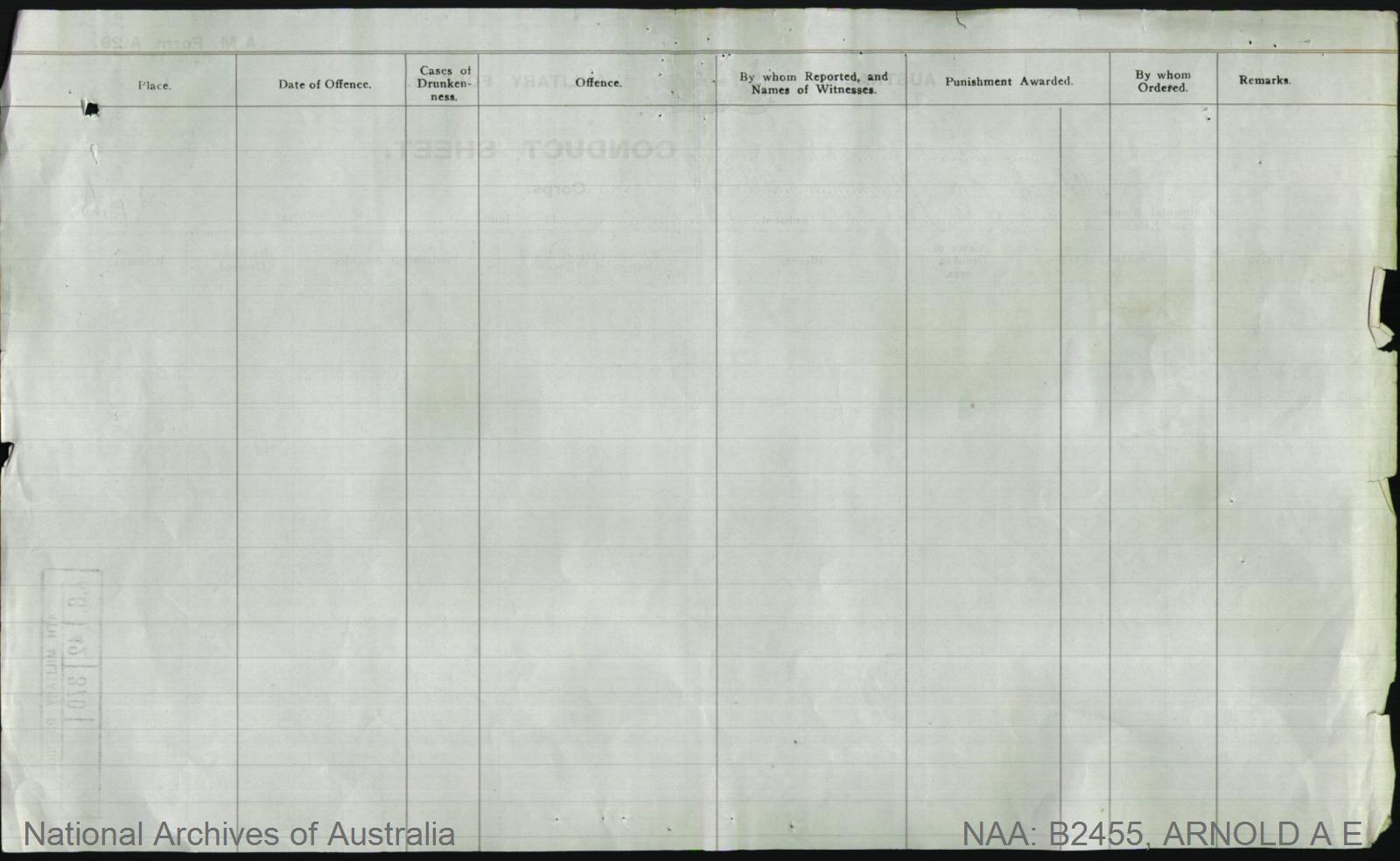 Blank Page of Record of Offences