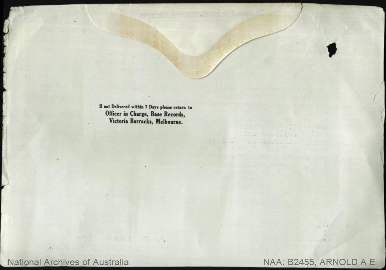 Envelope from Officer in Charge,