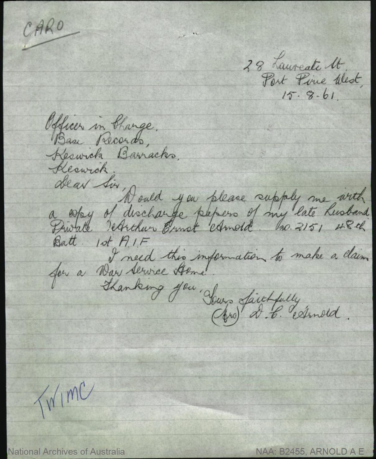 A letter from Daisy 1961.