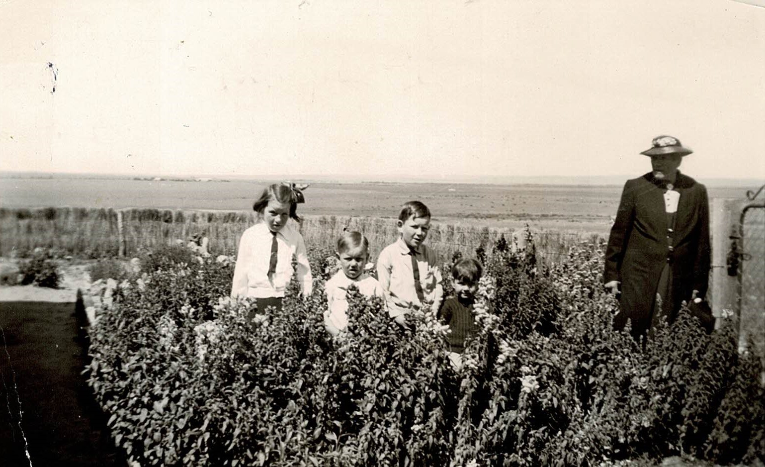 3.5.7 Erna Arold with children, Desma, Ken, Denis and Margaret at Cummins Property Garden.