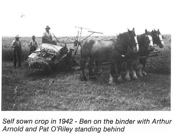 After leaving school Ben worked for his father on the farm and also for a time in the local chaff mill. Later, together with his brother, they did share-farming on their father’s property and also for neighbours until they bought land of their own including the father’s property.